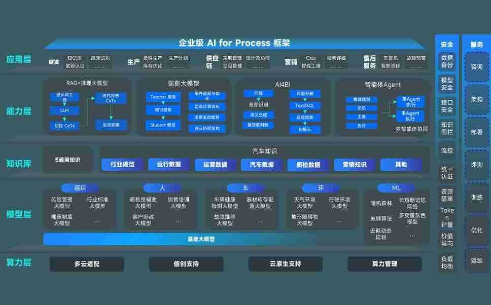 巅峰国际问学智车解决方案是一套基于AI技术的汽车行业智能化系统,,,覆盖从底层算力到顶层AI应用的全栈方案。。。。方案由算力层、、、模型层和应用层组成:算力层,,方案支持多种一体机配置,,,具备云端灵活部署、、、、多云适配以及动态优化计算资源的能力;模型层,,巅峰国际问学平台版提供了企业级AI应用一站式构建与管理平台,,支持基于后训练强化技术的汽车企业专属模型的训练、、、、评测和运营;应用层,,巅峰国际问学DeepSeek版提供包括超级员工、、智能招采、、智能营销、、、智能客服、、、、AI for BI等一系列解决方案,,可助力汽车行业实现数字化转型,,,,让管理更智能、、、响应更敏捷。。。。